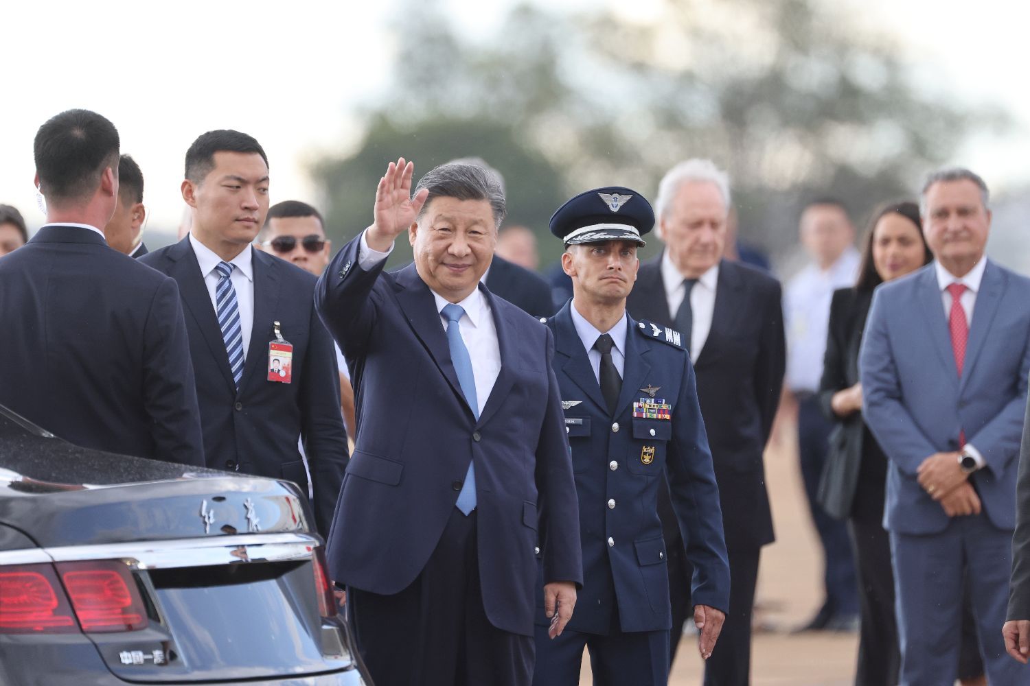 中新社报道,专机抵达巴西利亚空军基地时,巴西总统府首席部长科斯塔、巴西利亚空军基地司令米格尔、司法部长莱万多夫斯基、总统府机构关系部长帕迪利亚等高级官员在机场热情迎接,代表卢拉总统和巴西政府热烈欢迎习近平主席到访。