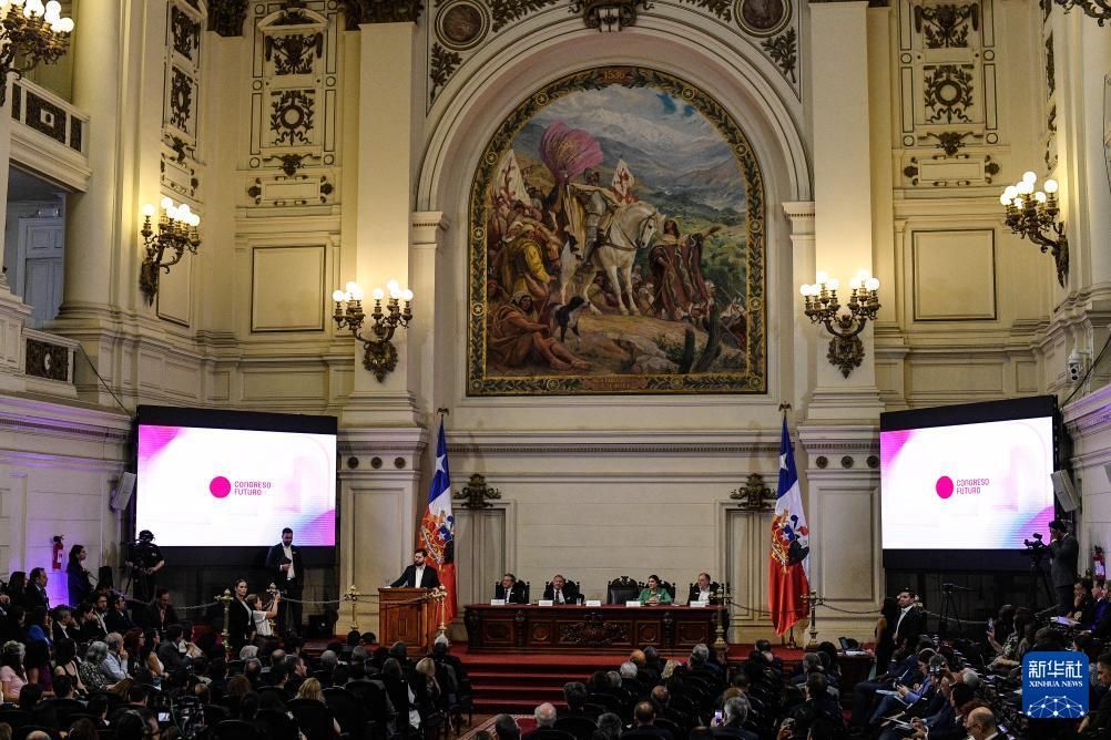 1月13日,智利第十四届“未来大会”开幕式在首都圣地亚哥旧国会大厦内举行,智利总统博里奇出席并发表演讲。新华社