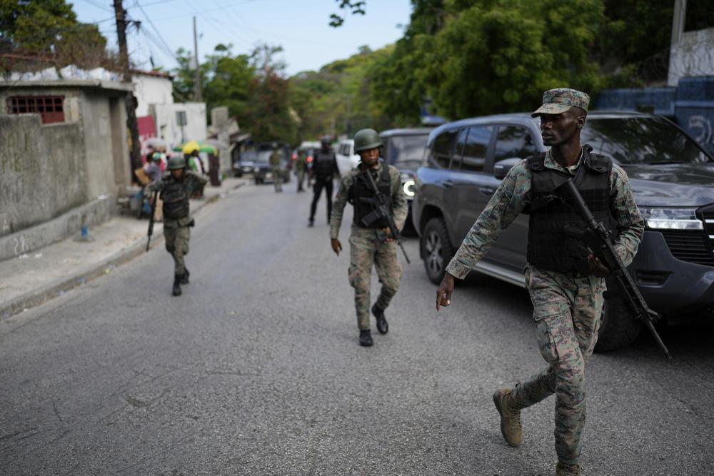 2024年4月25日,在海地首都太子港,士兵在总理府附近巡逻。新华社