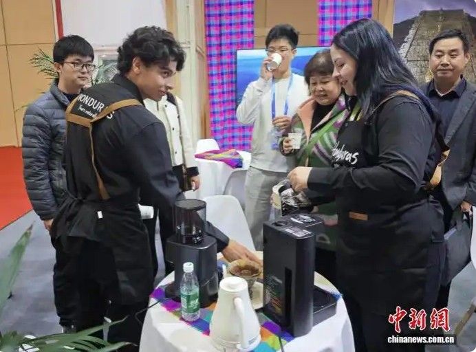 11月4日,海内外客商在郑州品尝洪都拉斯咖啡。中新网
