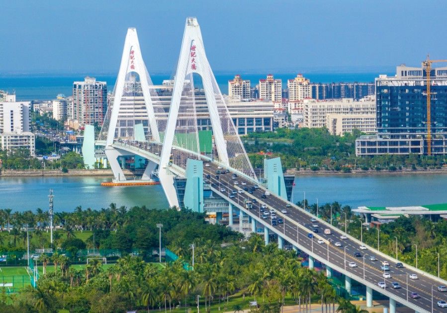 12月18日,海南自由贸易港正式启动全岛封关。图为2025年11月21日,海南省海口市世纪大桥。中新社