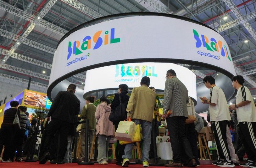 11月9日,在第八届进博会国家综合展上,巴西馆人流众多。第八届中国国际进口博览会正在上海举行。中新社