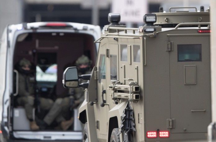 当地时间1月5日,委内瑞拉总统马杜罗在美国纽约南区联邦法院首次出庭,对美方所谓“犯罪”指控表示不认罪。图为装甲押解车辆当天下午离开法院。中新社