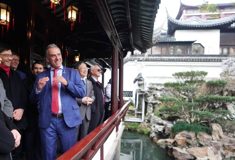 2月5日,乌拉圭总统奥尔西到访上海豫园。中新社
