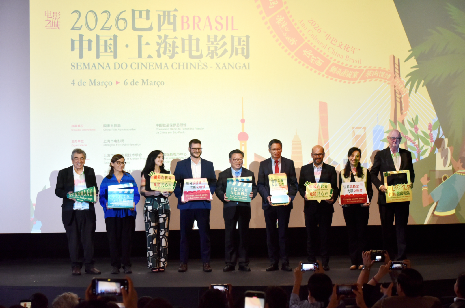 夜色渐浓,巴西最大城市圣保罗市中心的彼得罗布拉斯电影中心灯光璀璨。“与电影之城上海温暖相遇”“中巴因文化与电影相连”“银幕连世界,光影共心声”……放映厅的舞台上,来自圣保罗和上海的中外嘉宾们共同举起中葡双语祝福牌,2026巴西“中国·上海电影周”就此拉开帷幕。