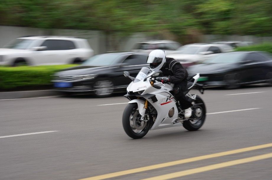 4月1日,一位中国顾客在试驾张雪机车。中新社