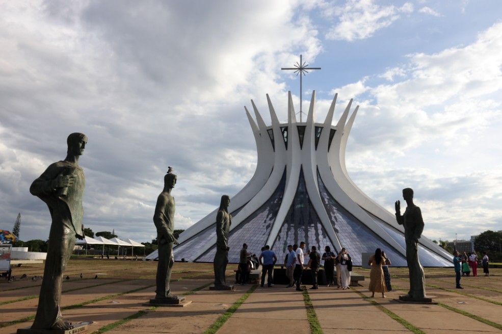 2024年11月18日,游客参观巴西利亚大教堂。中新社资料图