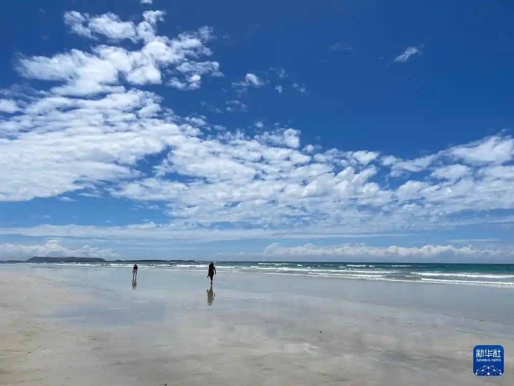 2月18日,游客在厄瓜多尔加拉帕戈斯群岛的海边散步(手机照片)。新华社