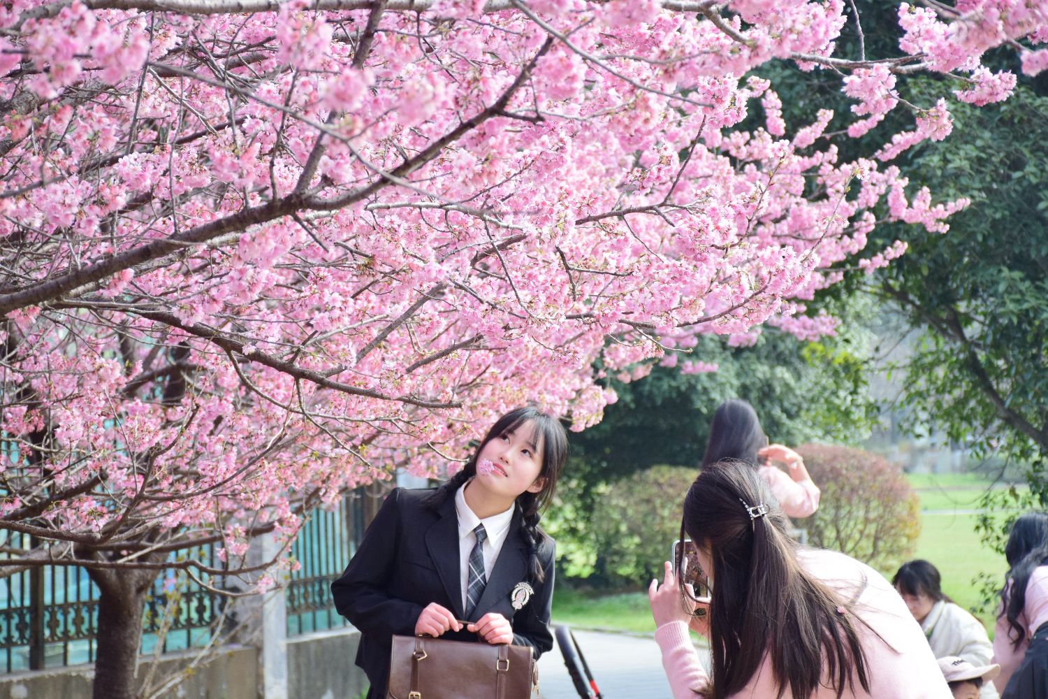 中新社报道,每年3月,湖北武汉大学校内的樱花大道、鲲鹏广场、行政楼附近樱花绵延盛放,樱花与早期古建筑和百年名校文化氛围相应和,吸引不少游客前去赏樱。