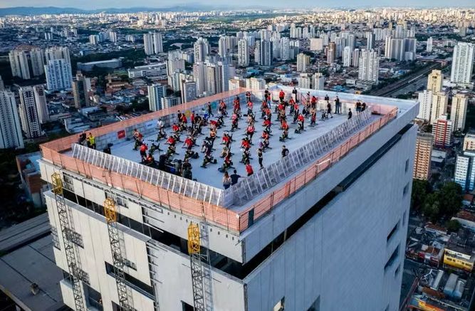 这些提供城市全景的课程也被用于企业活动。例如,位于贝里尼大道(Berrini)地区的一家电信公司暂停了大楼直升机场的使用,以举办一场带有圣保罗天际线美景的动感单车课程。