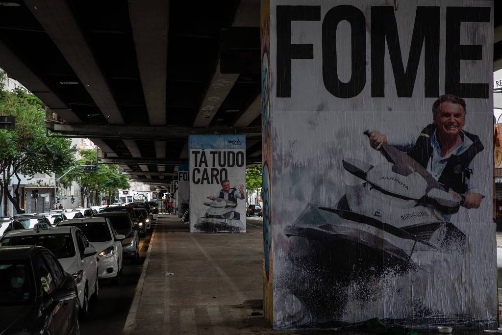 巴西张贴的反对总统、反对高物价和饥饿的海报。《圣保罗页报》
