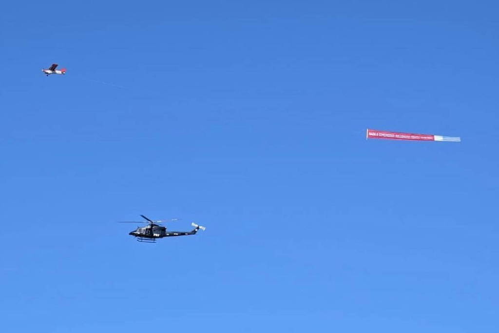 这架飞机由PRF全国联合会(FenaPRF)租用,在空中抗议期间,飞机一度与参加活动的PRF直升机争夺空间。