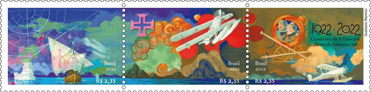 纪念人类首次空中穿越南大西洋100周年邮票。巴西国家通讯社