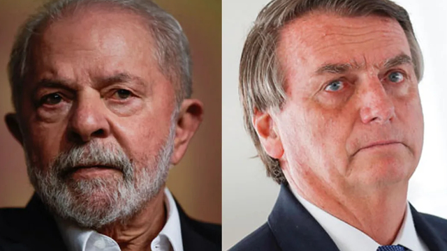 2022年巴西总统大选投票意向调查排名第一的卢拉(左)和排名第二的博索纳罗(右)。巴西G1网站
