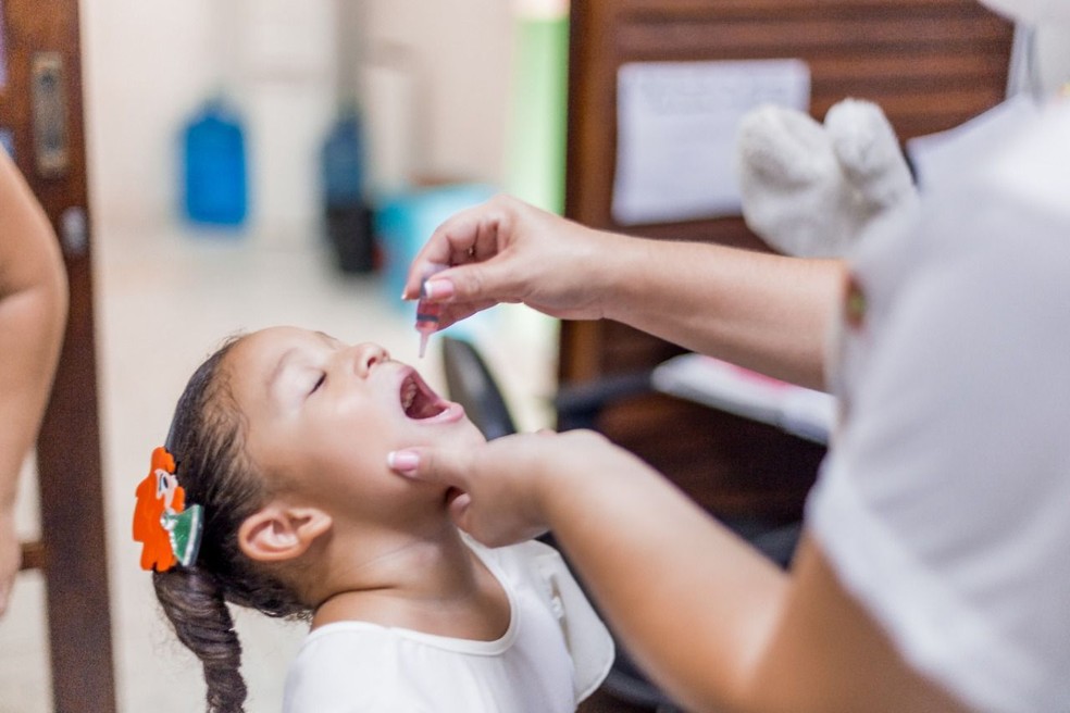 巴西儿童正在接受脊髓灰质炎疫苗口服滴剂。巴西G1网站