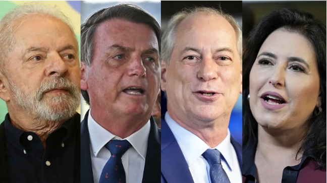 巴西总统候选人卢拉、博索纳罗、西罗·戈麦斯和西蒙妮·特贝特(从左至右)。巴西“G1”网站