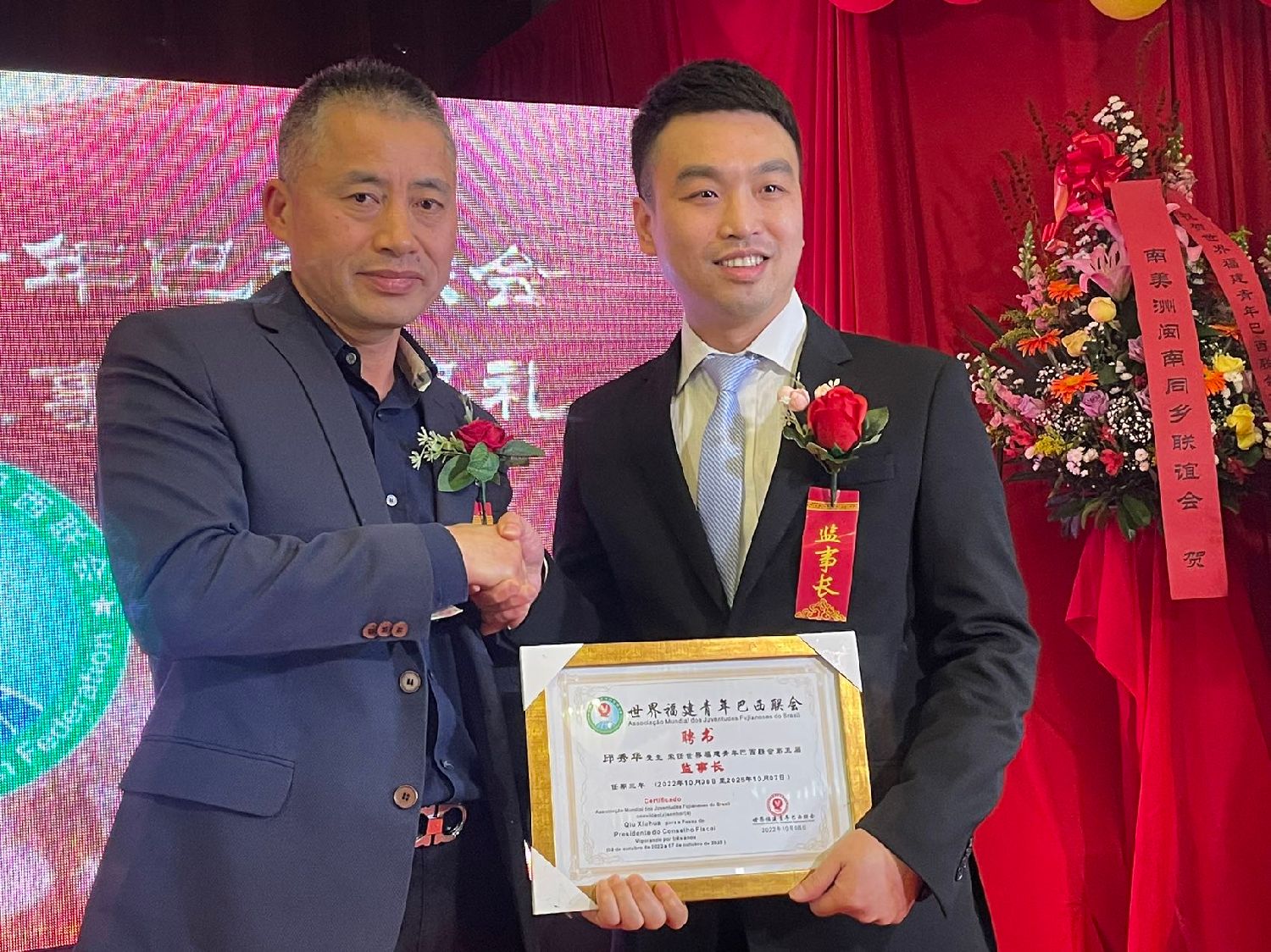 颁发聘书时,巴西华人协会会长叶周永为会长吴成纬和监事长邱秀华颁发了聘书,巴西华人协会王万瑞监事长为执行会长卢贤先和秘书长卢端飞颁发了聘书。
