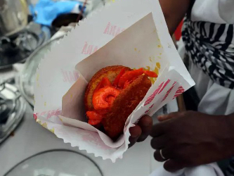 Acarajé是巴伊亚州(Bahia)饮食文化的标志之一,因此,这款用掺杂了豆子的面团和棕榈油炸制而成的面包成为体育场内最受欢迎的美食也不足为奇。最常见的吃法是将虾和特制酱料Vatapá制成馅料塞入Acarajé中。