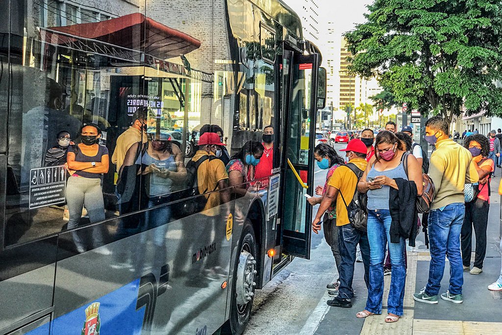 圣保罗市居民乘坐公交车。巴西网站“Exame”