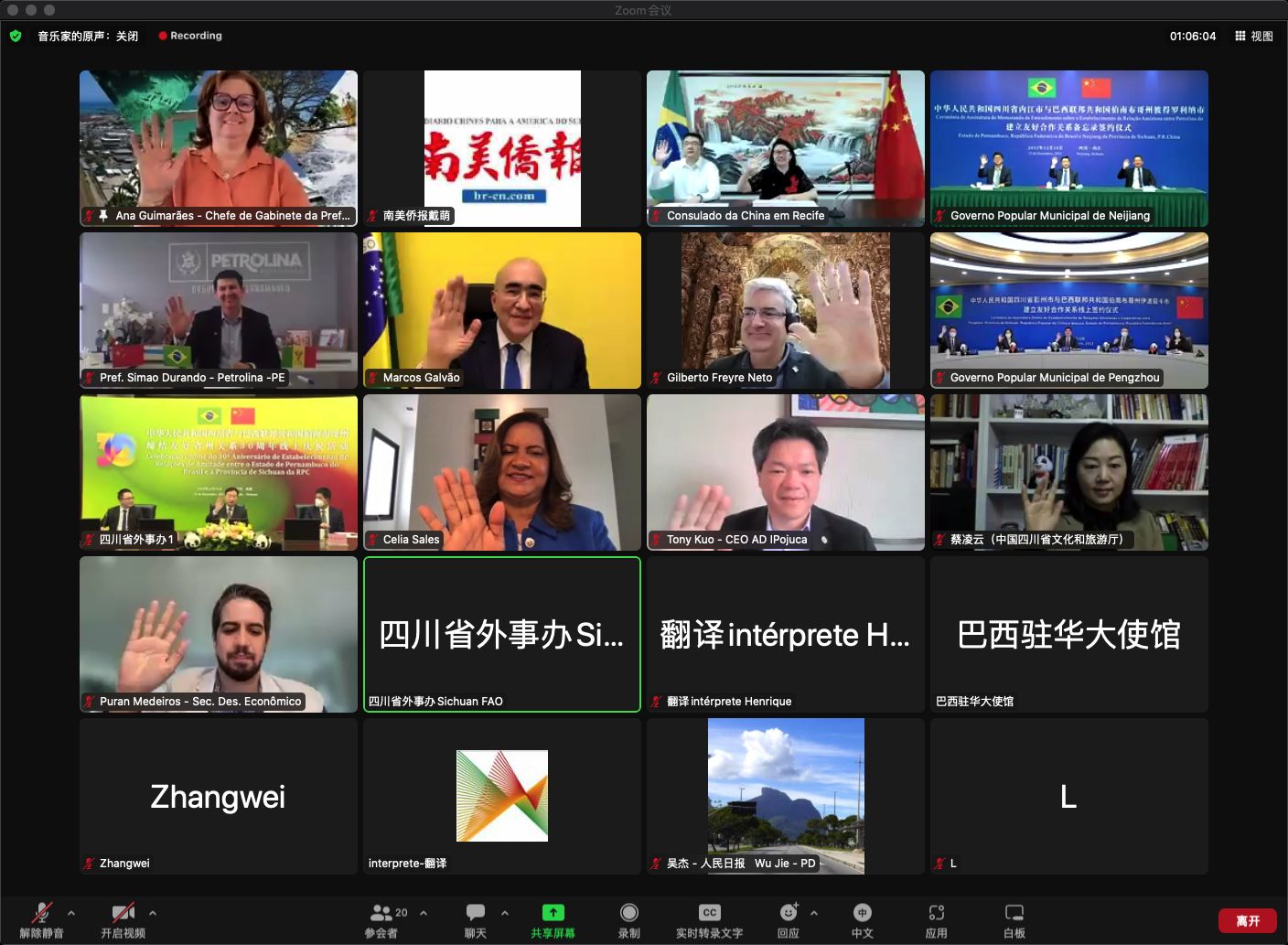 【南美侨报圣保罗记者戴萌报道】12月15日,四川省与伯南布哥州结好30周年纪念活动在“云端”成功举行。