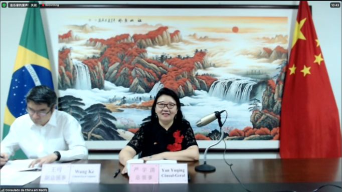 副州长桑托斯因工作无法直播连线特发来视频致辞,视频中她首先送上了伯州州长保罗·卡马拉(Paulo Câmara)的祝贺。并表示,她一贯重视巴中两国关系,对双方合作特别是具有战略意义的领域合作充满信心,愿继续推动这一重要伙伴关系发展。