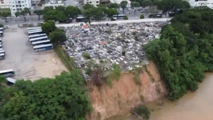 巴西网站“G1”报道,这段视频由企业家利奥·博纳迪曼(Leo Bonadiman)录制,拍摄地点为圣母无染原罪公墓(Cemitério Nossa Senhora da Conceição)。在社交网站上,有消息称现在有部分墓地可能已经落入河中,但市政府否认了这一说法。