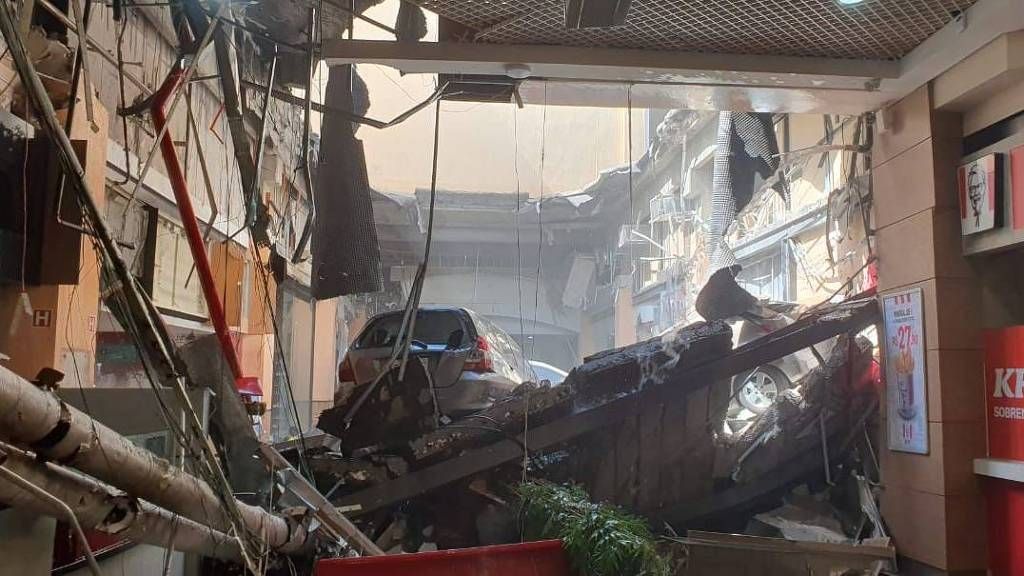 巴西圣保罗大都市区奥萨斯科广场购物中心的部分天花板坍塌。《圣保罗页报》