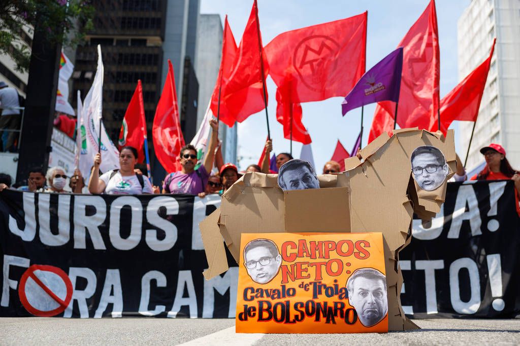 巴西《圣保罗页报》报道,示威者称,基准利率(Selic)维持在每年13.75%只会有利于金融机构,经济增长和创造就业都会因此遇到障碍。他们在海报上写着“增加就业,减少利息”,批评巴西央行行长罗伯托·坎波斯·内托(Roberto Campos Neto)的货币政策,并要求其下台。