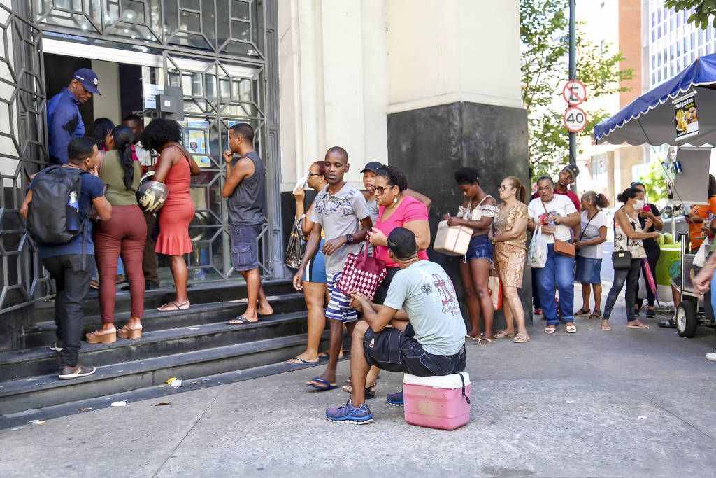 巴西贫困居民排队领取家庭援助金。巴西《圣保罗页报》