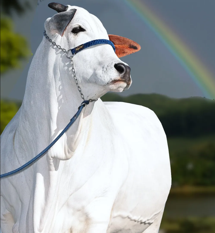 这是巴西乃至全世界最贵的母牛,身价为2096.9万雷亚尔,于2019年在戈亚斯州(Goiás)出生。对它的日常护理包括用低过敏性洗发水洗澡、拥有私人“房间”、24小时安保以及在耳朵里涂抹葵花籽油。