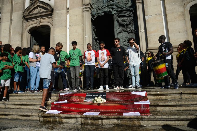 【南美侨报网编译张裕7月25日报道】坎德拉里亚暴力事件(Chacina da Candelária)已过去30年,24日上午,巴西里约热内卢市(Rio de Janeiro)一群活动者聚集在坎德拉里亚教堂(Igreja da Candelária)周围悼念受害儿童。