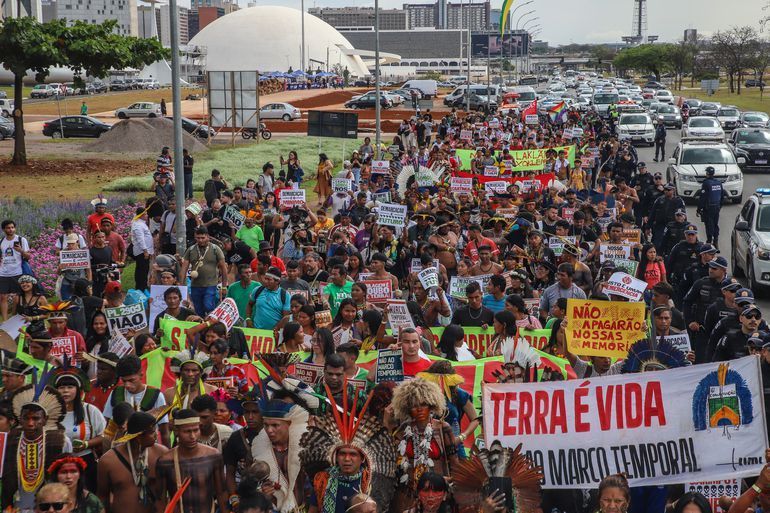 巴西国家通讯社报道,该法案规定,土著居民只有证明在《宪法》颁布之日(1988年10月5日)前已占领了某片土地,这片土地才能被划分为土著保护区,其他时段占领的土地均不算在内。当日上午,800至1000名不同部落的土著居民聚集在巴西首都,反对通过该项法案。“我们的土地是祖传的,不是临时的”,几位土著领导者高喊。