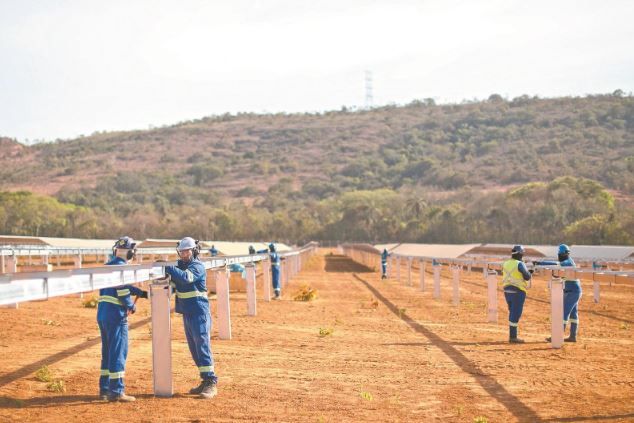 中电装备巴西公司员工在CEMIG光伏发电项目现场安装光伏板。北京《国家电网报》