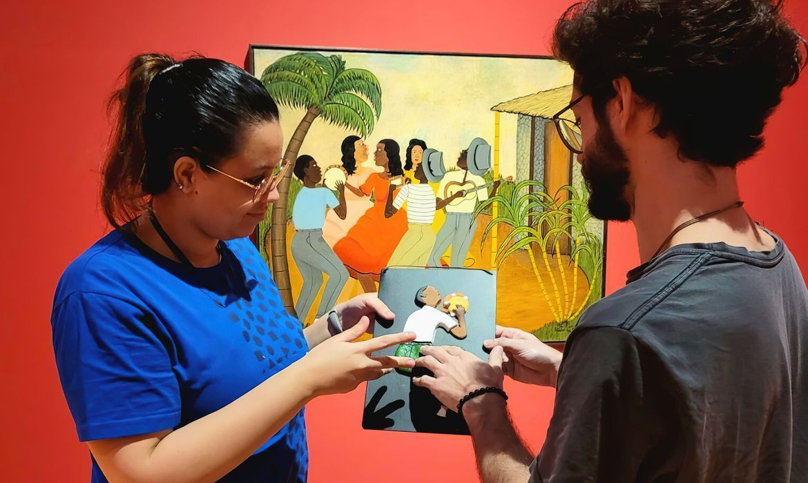 巴西国家通讯社报道,海托尔·多斯·普拉泽雷斯是巴西著名作曲家、歌手和画家。该项工具专为视障人士开发,可对每幅作品进行文字叙述和图像描述。在CCBB展厅中,所展出作品均配有触觉板、声音景观和画作立体模型,需要某种类型无障碍工具支持的游客以及想要获得不同体验的游客,都可以在引导者的帮助下进行体验。