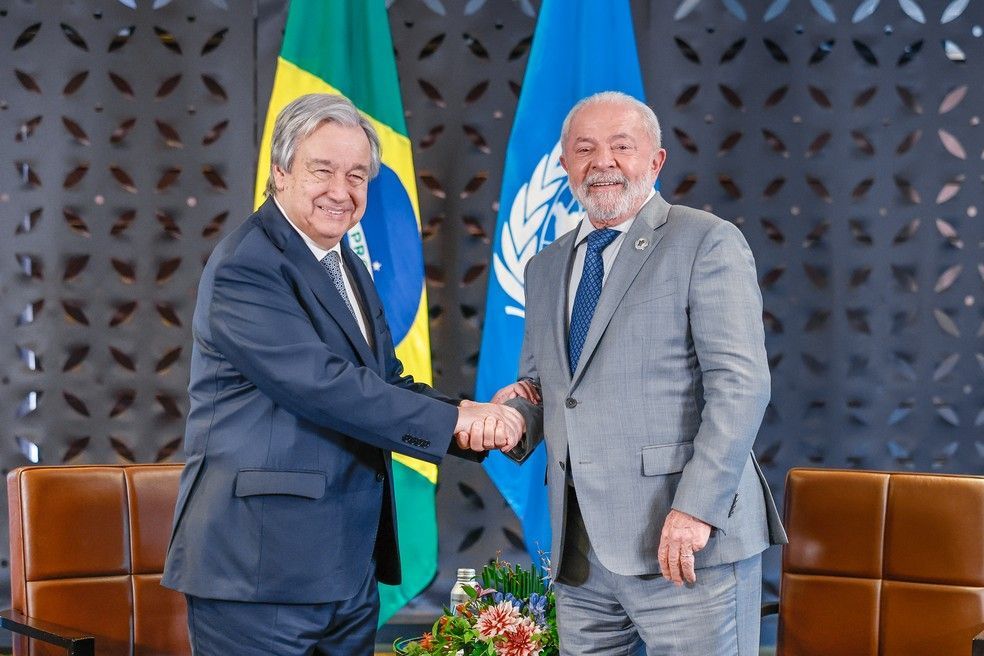 七国集团峰会期间,巴西总统卢拉(右)与联合国秘书长古特雷斯(左)会面。巴西总统府