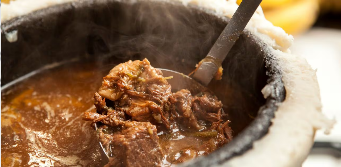Barreado是巴拉那州沿海地区的标志性菜肴,起源于葡萄牙亚速尔群岛,在近200年间逐渐融入了巴西当地美食文化。尽管看起来平平无奇,但想要做好这样一道菜肴却要煞费苦心,因为要将牛肉、培根和调味料放入锅中,小火慢炖至少8个小时,有的厨师甚至会选择炖煮一天以上。期间,还要用木薯粉面团封住锅盖与锅身的接缝处,避免水分和热量流失,最后再配以香蕉和木薯粉食用。