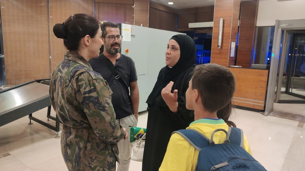 抵达埃及开罗的巴西人正在与巴西空军的心理治疗师交流。巴西空军