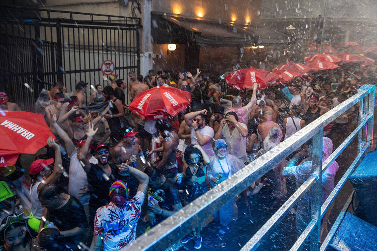 冒雨观看街头狂欢节游行表演的居民。巴西《圣保罗页报》
