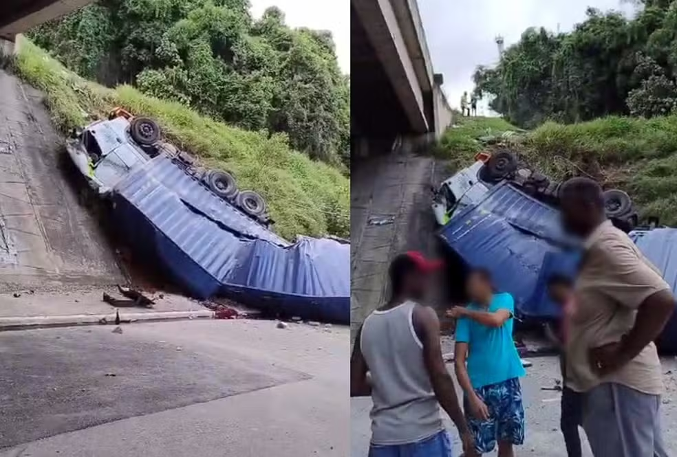 货车坠落到下方公路上。巴西网站“G1”
