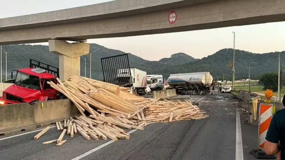 巴西网站“nsctotal”报道,有一辆载满木材的卡车不慎将货物散落在路上,另一辆装有燃料罐的卡车撞上了公路防护墙。本次事故造成至少1人受伤,并在现场接受治疗。