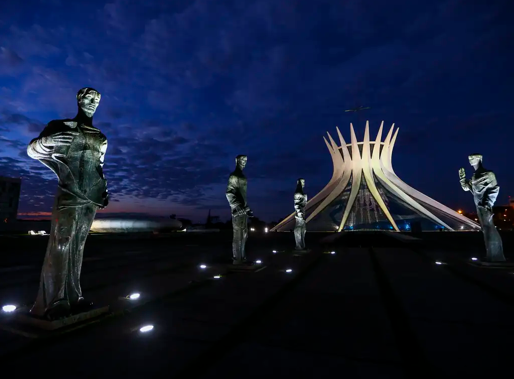 四座象征着传教士的3米高青铜雕塑守卫着巴西利亚大教堂的大门。巴西国家通讯社
