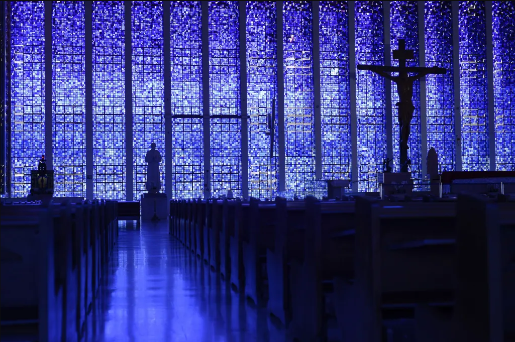 圣博斯克大教堂因蓝色调玻璃窗而闻名于世。巴西国家通讯社