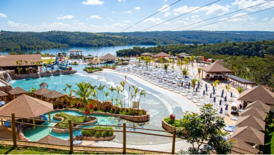巴厘公园沿科伦巴四世湖(Lago CorumbáIV)而建,占地超过20万平方米,投资高达1.2亿雷亚尔。其中包括一个巨大的造浪池、一个大型滑索设施、一个儿童乐园、五个沙滩运动场地以及一个漂浮平台,可供游客进行皮划艇、立式单桨冲浪和花式滑水等极限运动。