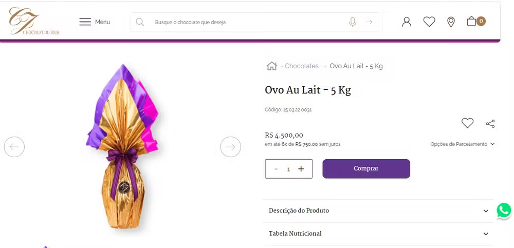 巴西最贵的复活节巧克力蛋售价高达4500雷亚尔。Chocolat du Jour网站截图