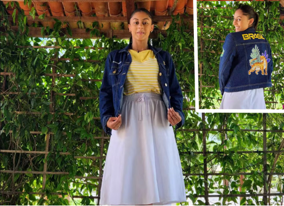 据悉,所有服装均采用回收材料制成。牛仔夹克上绣有金刚鹦鹉、巨嘴鸟和美洲豹的图案。这套服装由巴西知名时装品牌Riachuelo设计,灵感源自于本地特有的动植物物种。