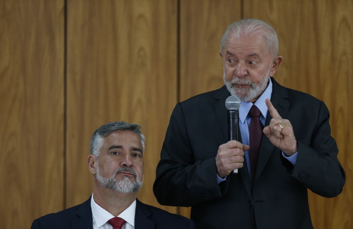 卢拉在社会宣传部长皮门塔身边发言