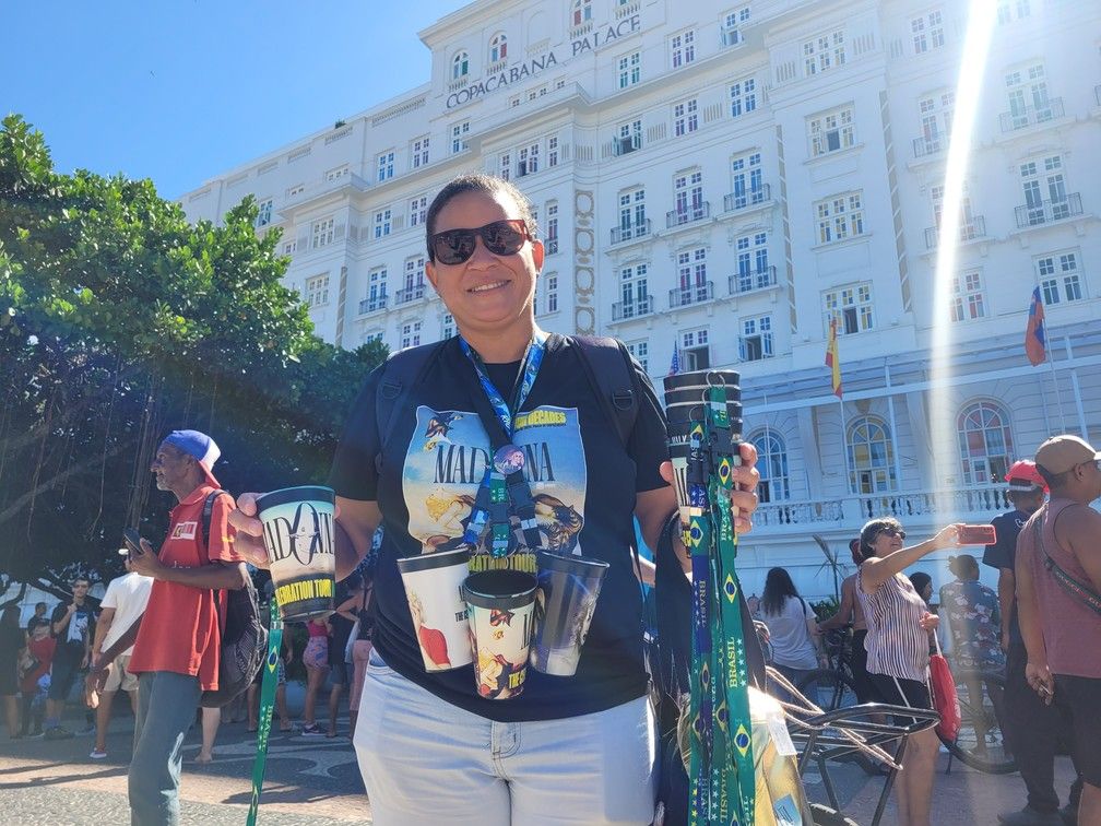 与麦当娜相关的商品贸易也在附近的街区蔓延。在博塔弗戈(Botafogo),带有闪亮图案和这位歌手形象的帽子可以在多个摊位上看到。