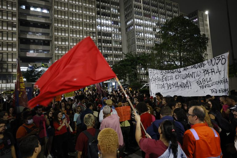 巴西里约热内卢州立大学学生抗议学校补贴新规。巴西国家通讯社