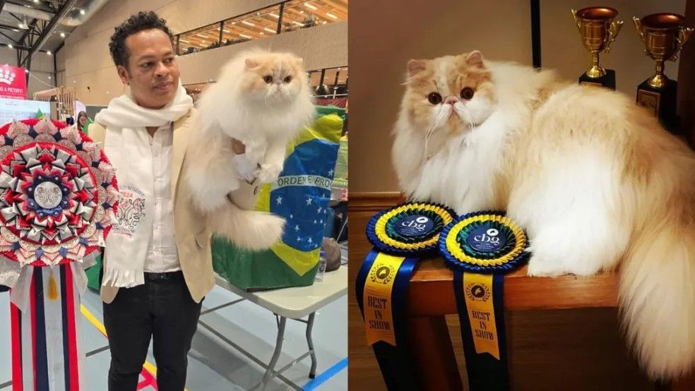 波斯猫麦克思在2024年“世界最美猫”比赛中拔得头筹。巴西“G1”网站