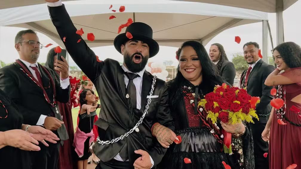 据《G1》报道,仪式遵循新人的意愿和他们所信仰的宗教习俗——新娘与其儿子共同经营位于HORTOLANDIA市的一个神庙——整个婚礼伴随着鼓声、歌唱与舞蹈,场景布置以红黑色为主调,包括宾客的着装也如此。